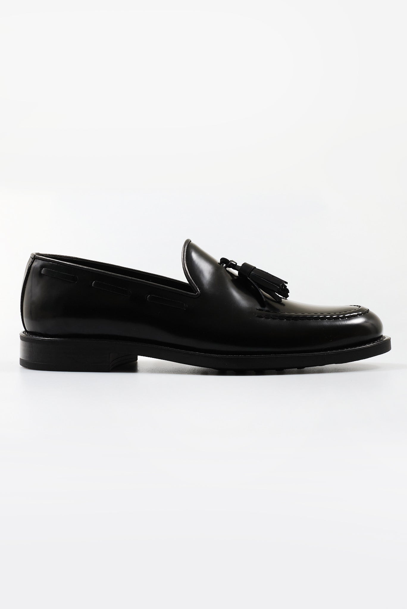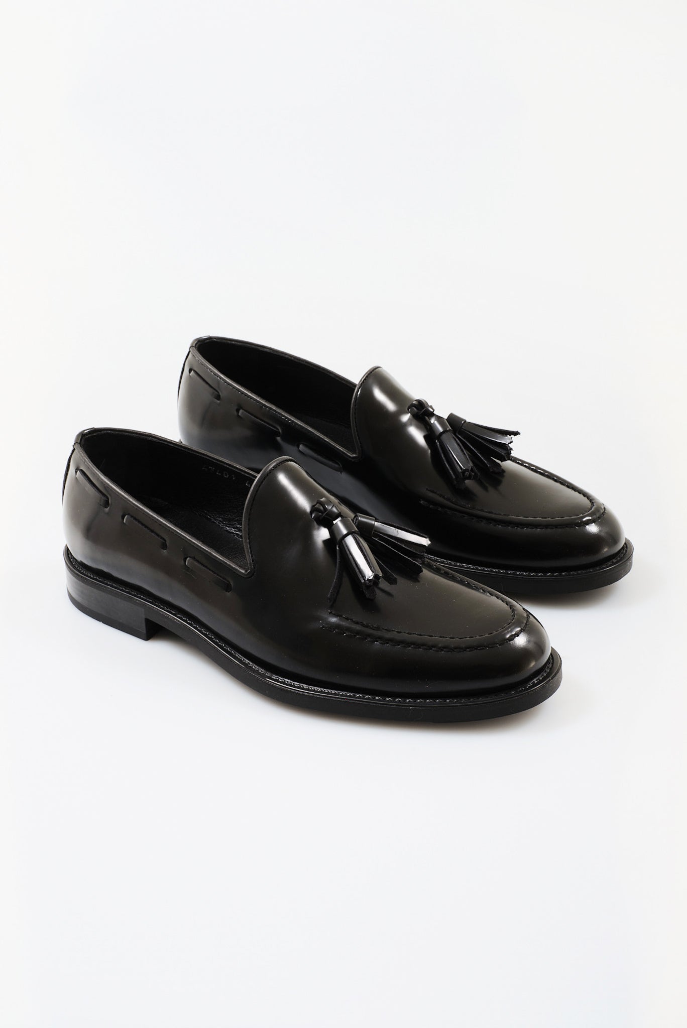 - Παπούτσια tassel loafers από 100% δέρμα, σε μαύρο χρώμα. Μία διαχρονική επιλογή για επαγγελματικές και smart εμφανίσεις.
