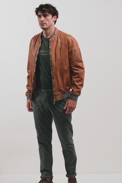 ΑΝΔΡΙΚΟ ΔΕΡΜΑΤΙΝΟ ΜΠΟΥΦΑΝ BOMBER MILESTONE ΣΕ ΤΑΜΠΑ ΧΡΩΜΑ