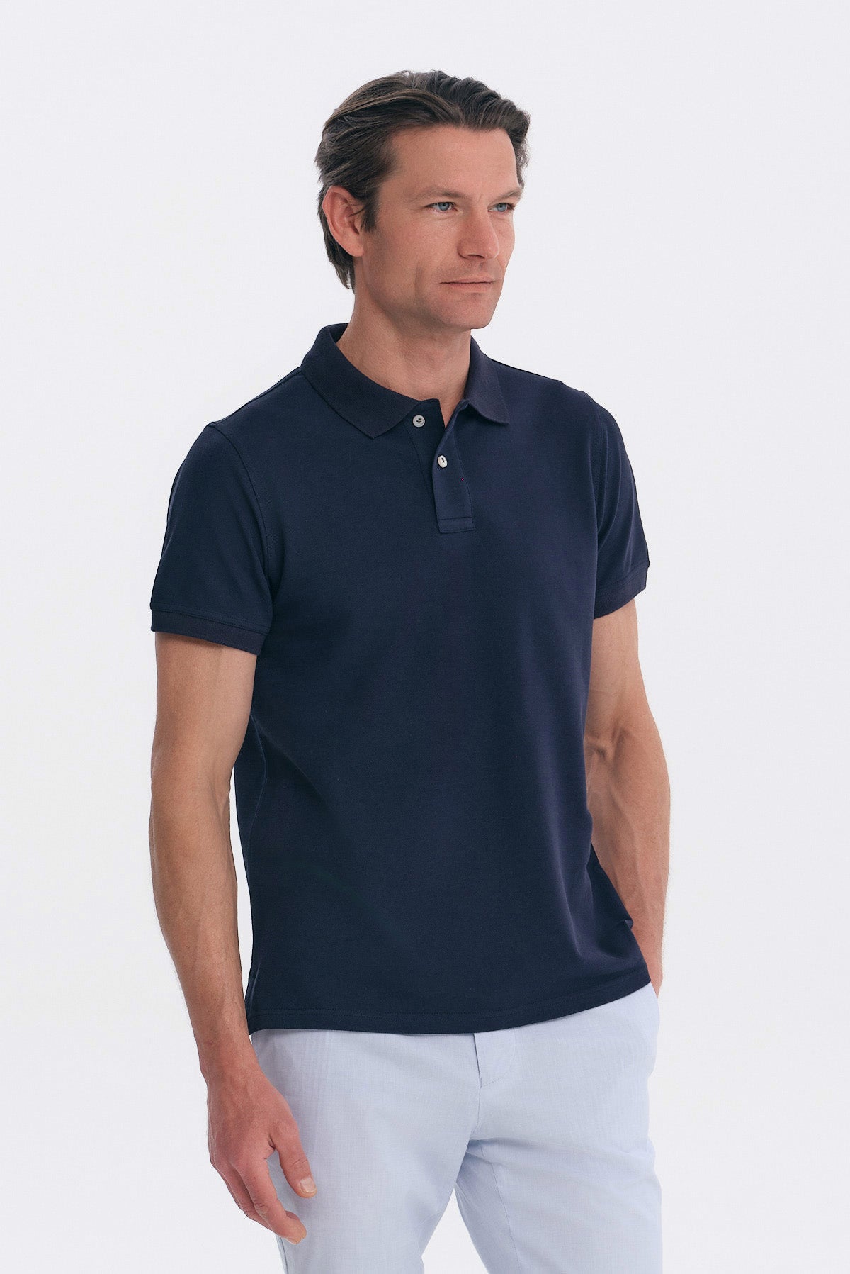 - Polo μπλε, μονόχρωμο και δύο κουμπιά κλείσιμο. Για ξεχωριστά σπορ και casual looks.