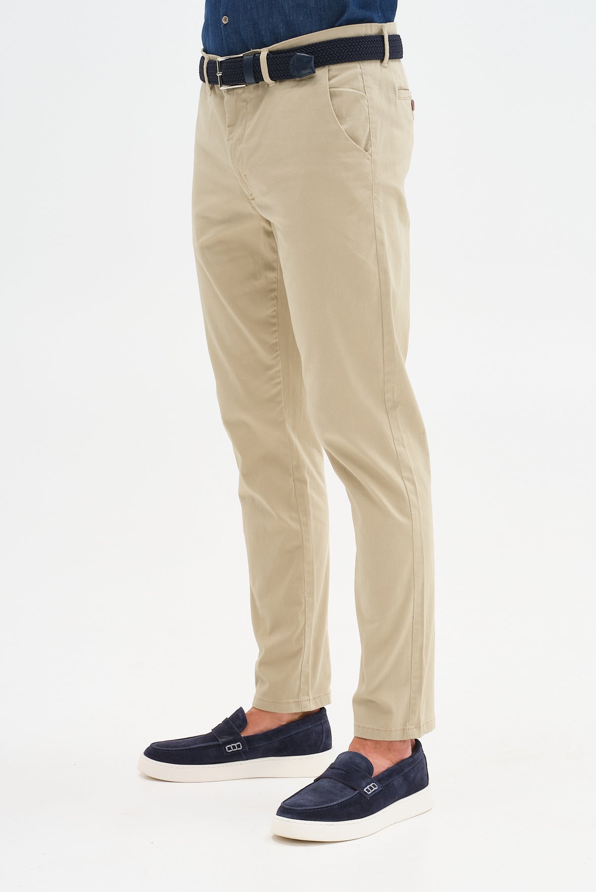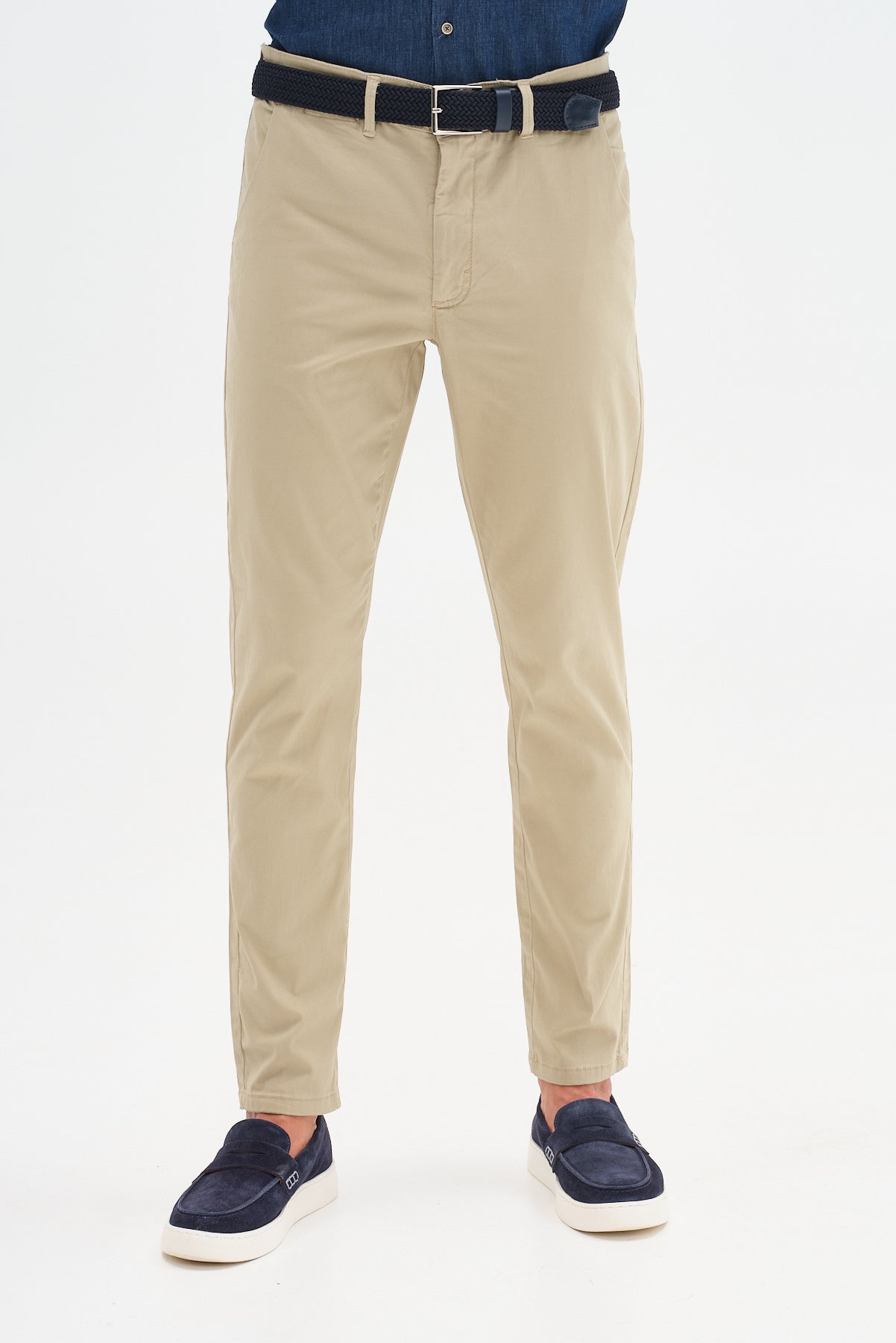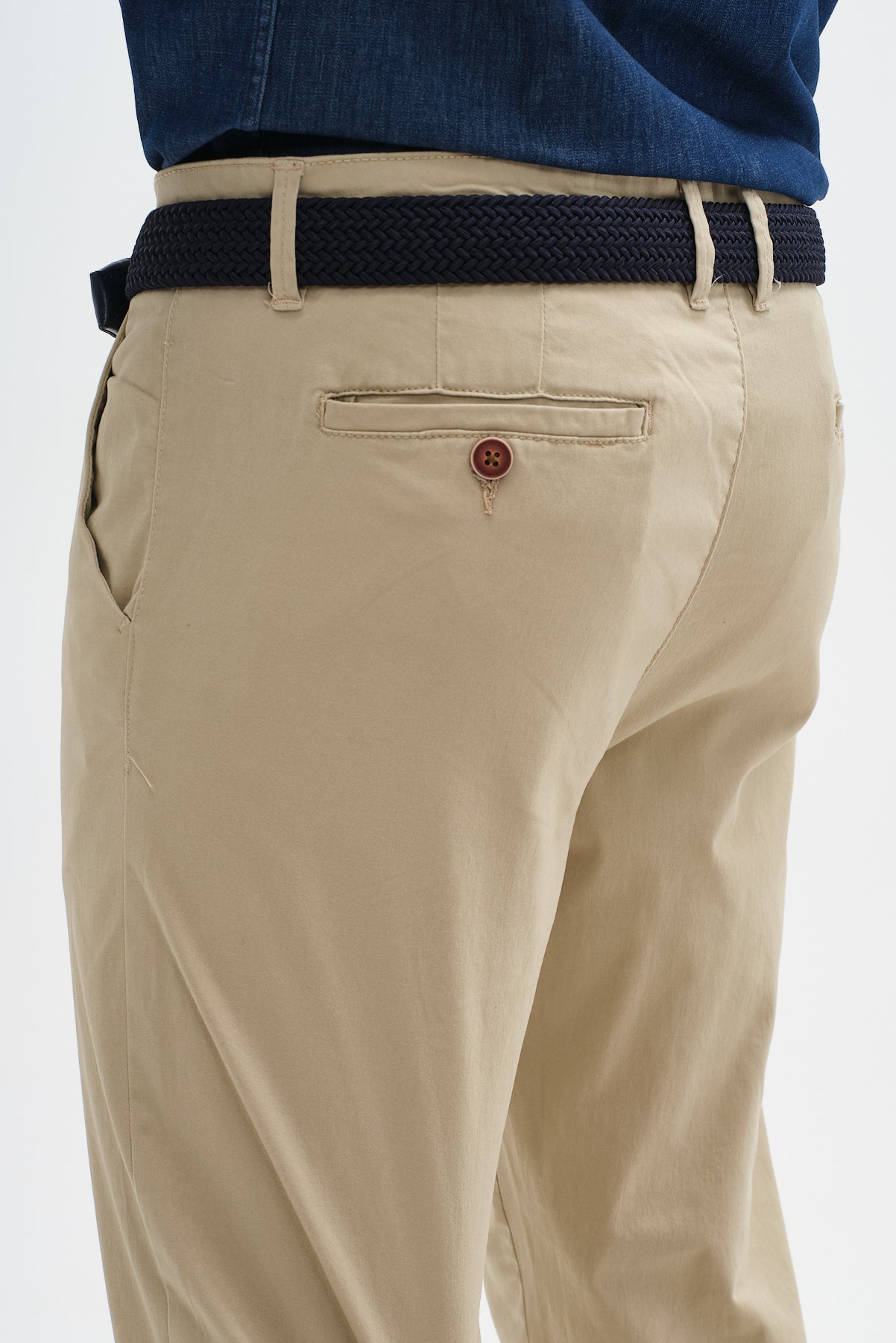 - Παντελόνι chinos σε μπεζ σκούρο χρώμα και κανονική γραμμή. Για casual εμφανίσεις το καλοκαίρι, στην πόλη και τις διακοπές.
