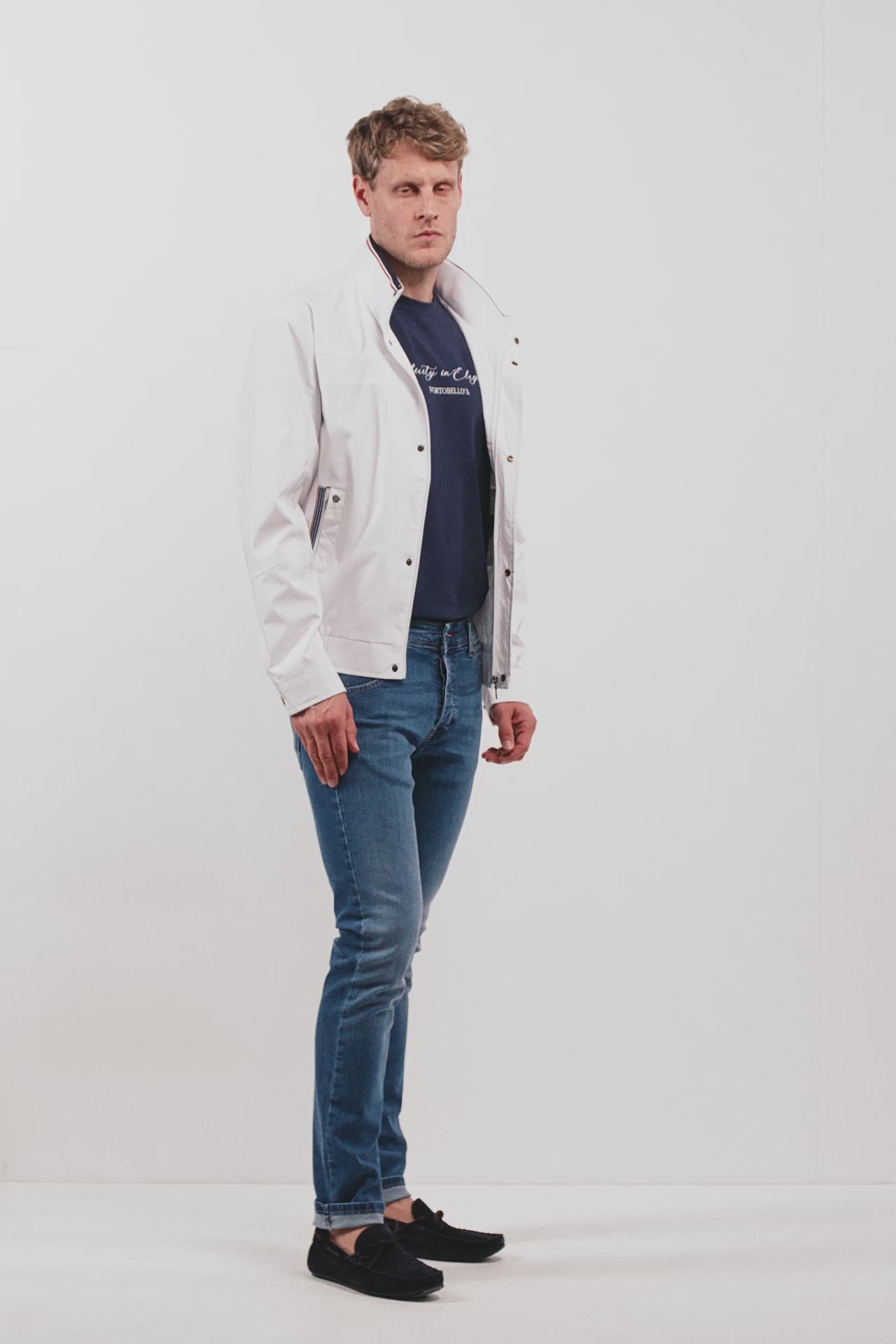 - Μπουφάν με φερμουάρ και κουμπιά, σε λευκό χρώμα, για τα πιο stylish outfits και ανοιξιάτικα looks.