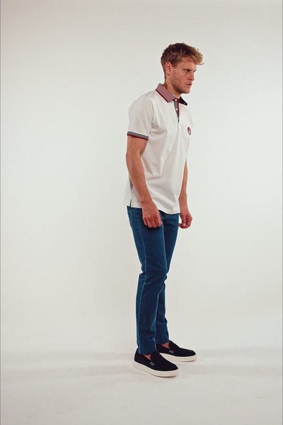 ΑΝΔΡΙΚΟ POLO ΚΟΝΤΟΜΑΝΙΚΟ ΛΕΥΚΟ PORTOBELLO'S ΜΕ ΜΠΛΕ ΛΕΠΤΟΜΕΡΕΙΕΣ
