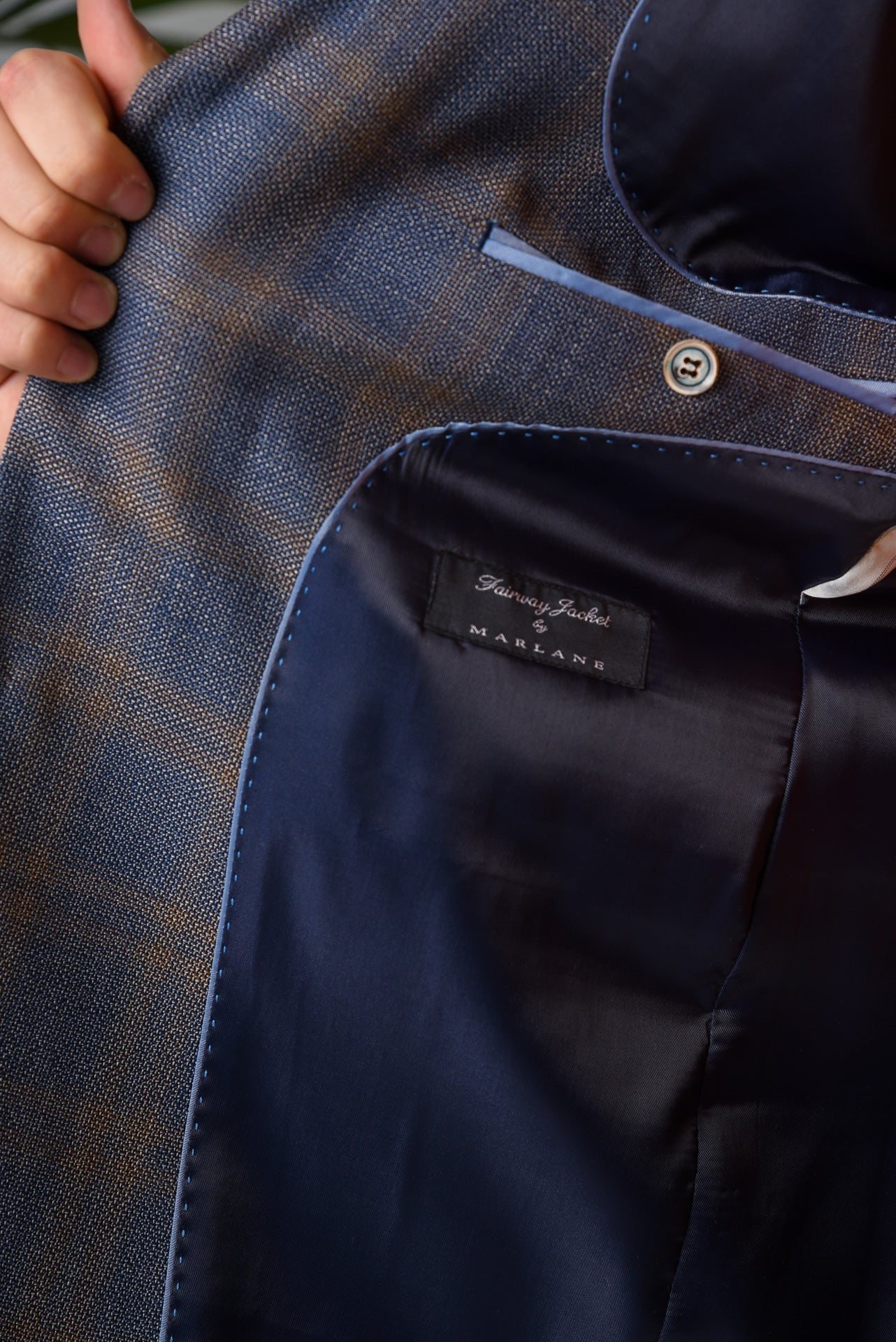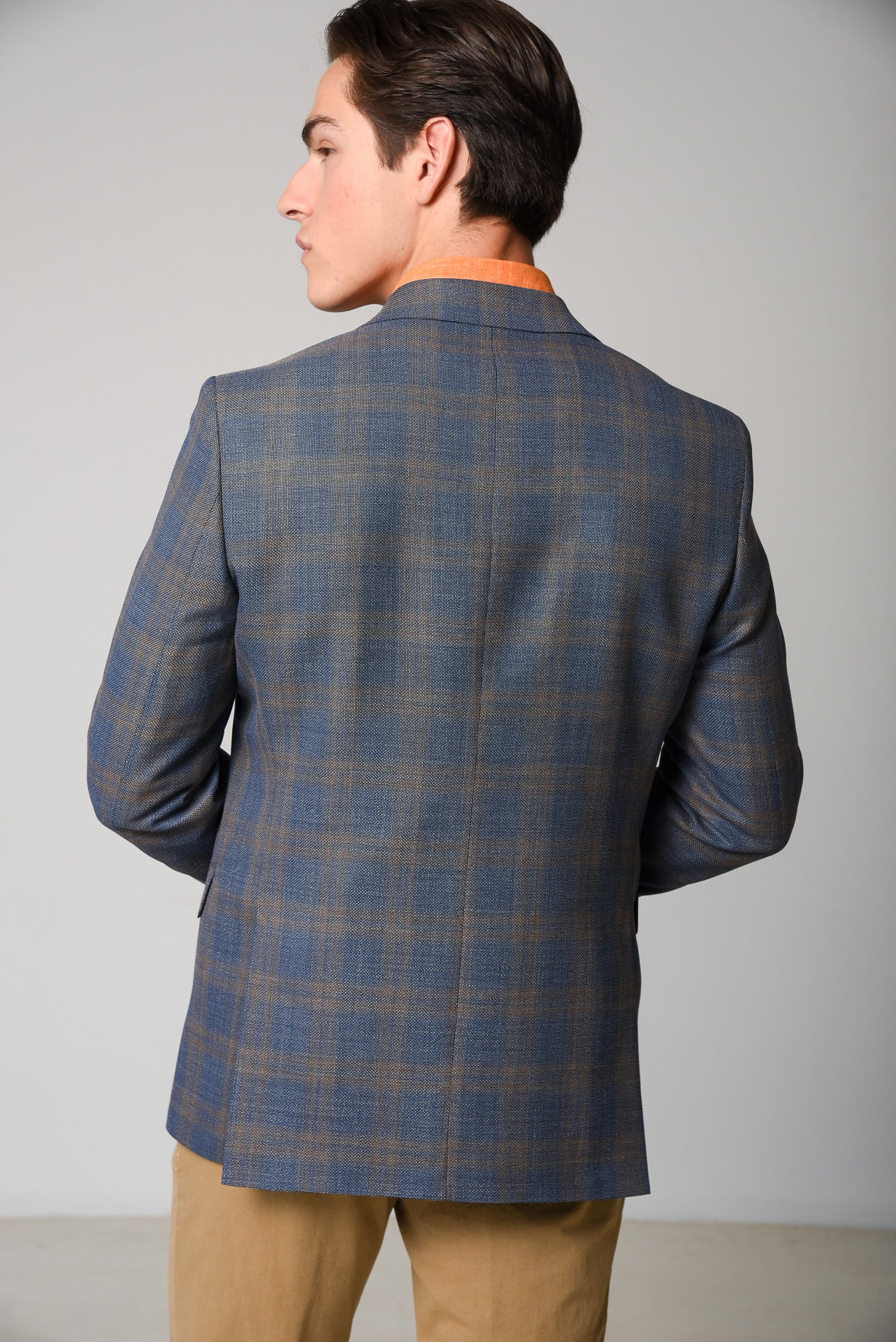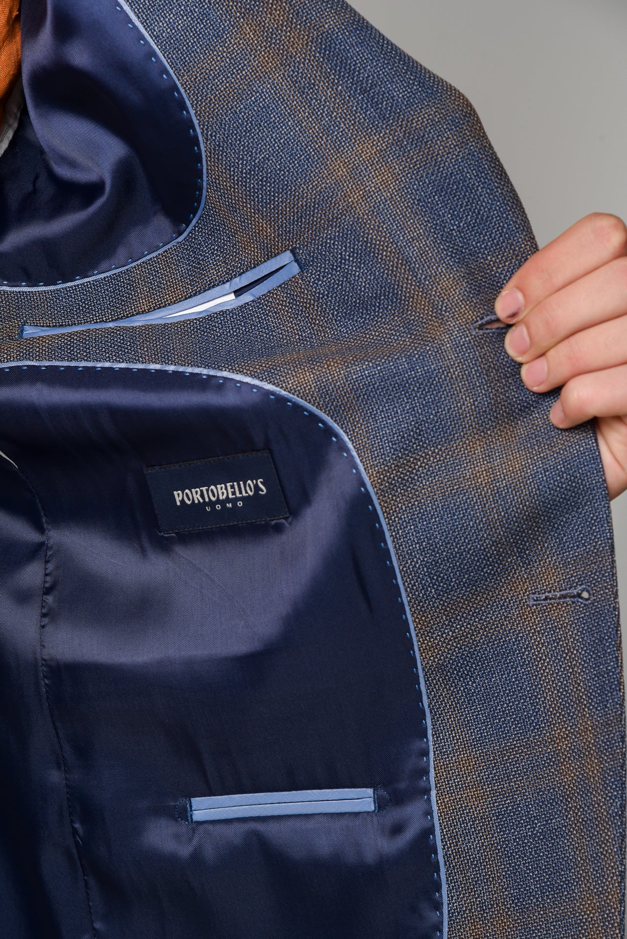 ΑΝΔΡΙΚΟ ΣΑΚΑΚΙ PORTOBELLO'S WINDOWPANE ΣΕ ΜΠΛΕ ΧΡΩΜΑ ΚΑΙ ΚΑΦΕ ΛΕΠΤΟΜΕΡΕΙΕΣ ΥΦΑΣΜΑ MARLANE