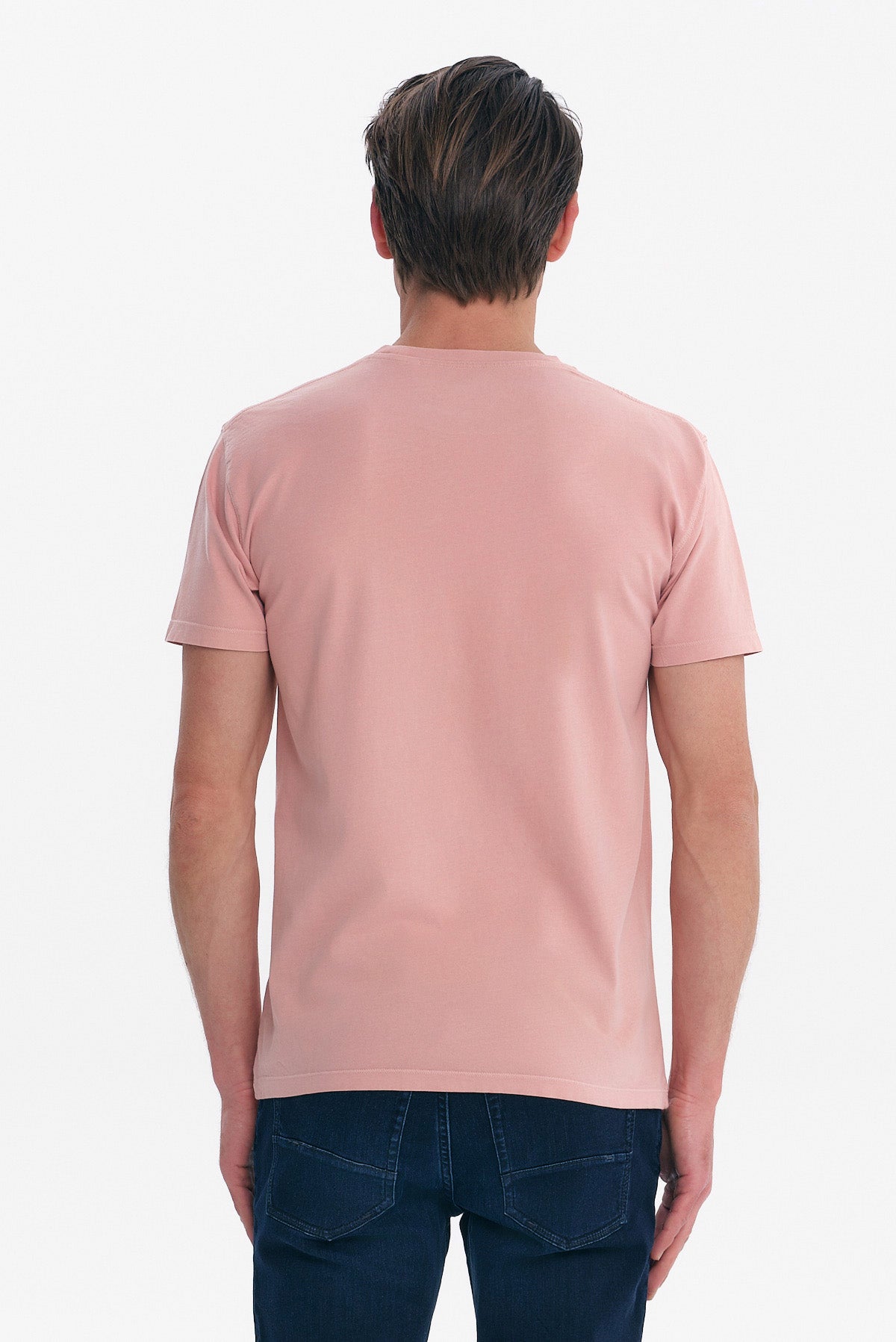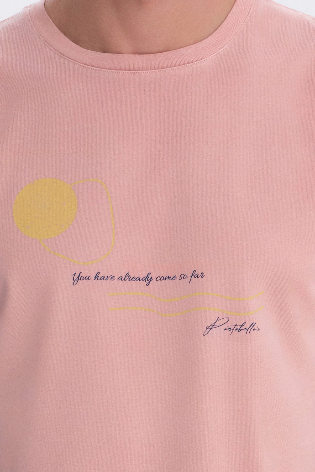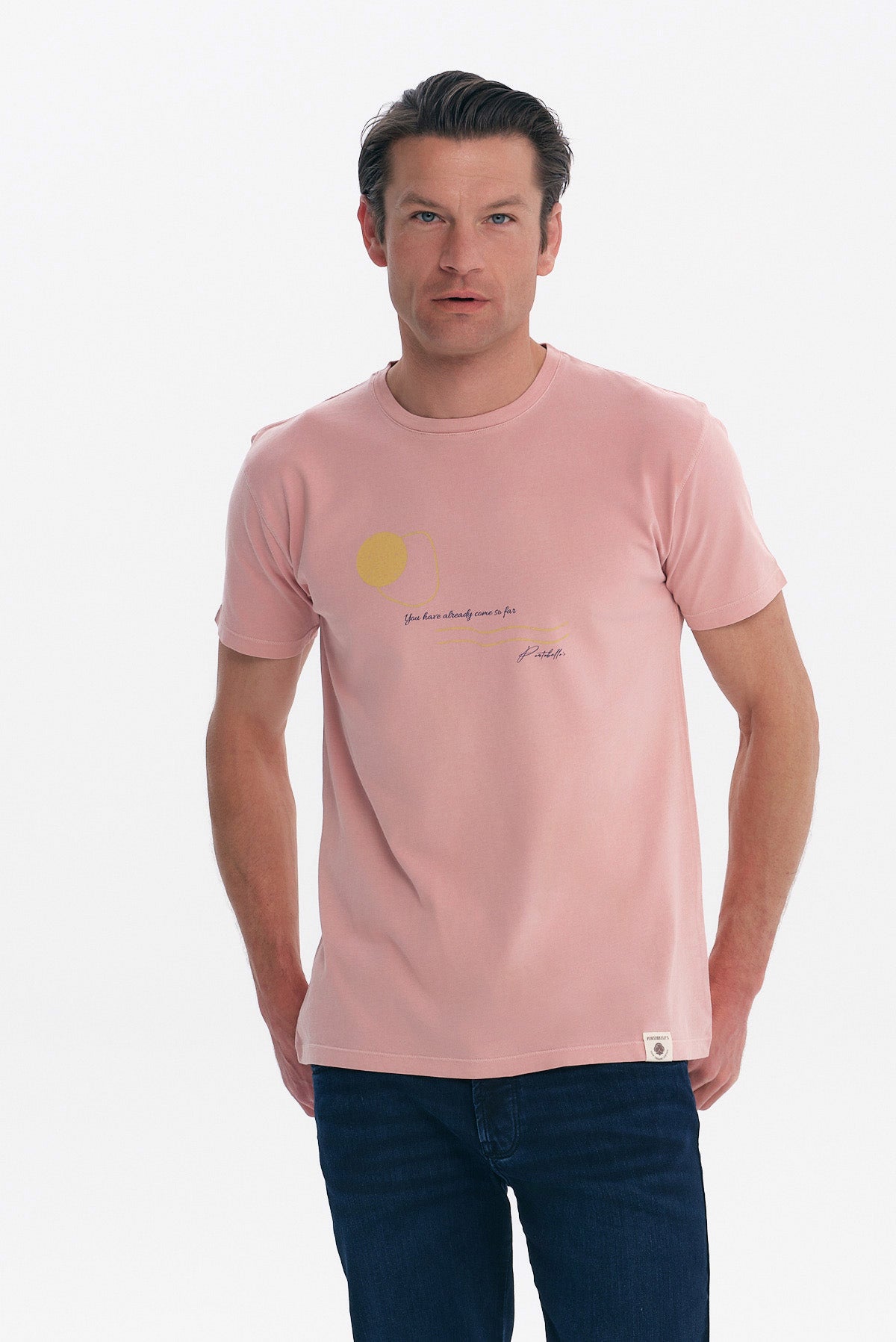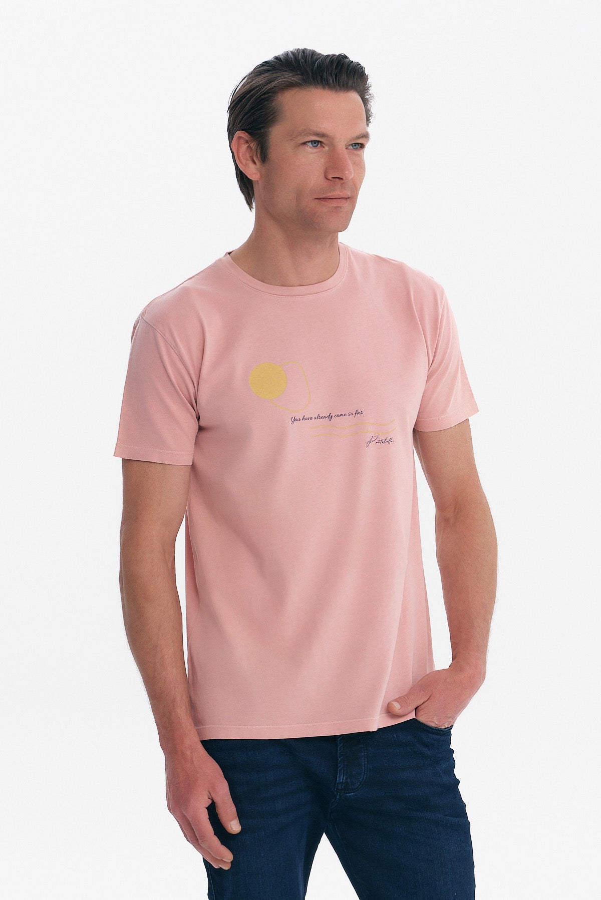 - Σομόν t-shirt με λαιμόκοψη και στάμπα στο στήθος.